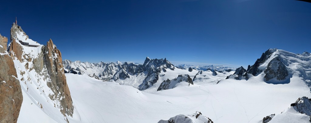 It all starts with the cable car up to the Aiguille du Midi, one of the most famous viewpoints in the Alps and an excellent place to question your life choices before you’ve even started.